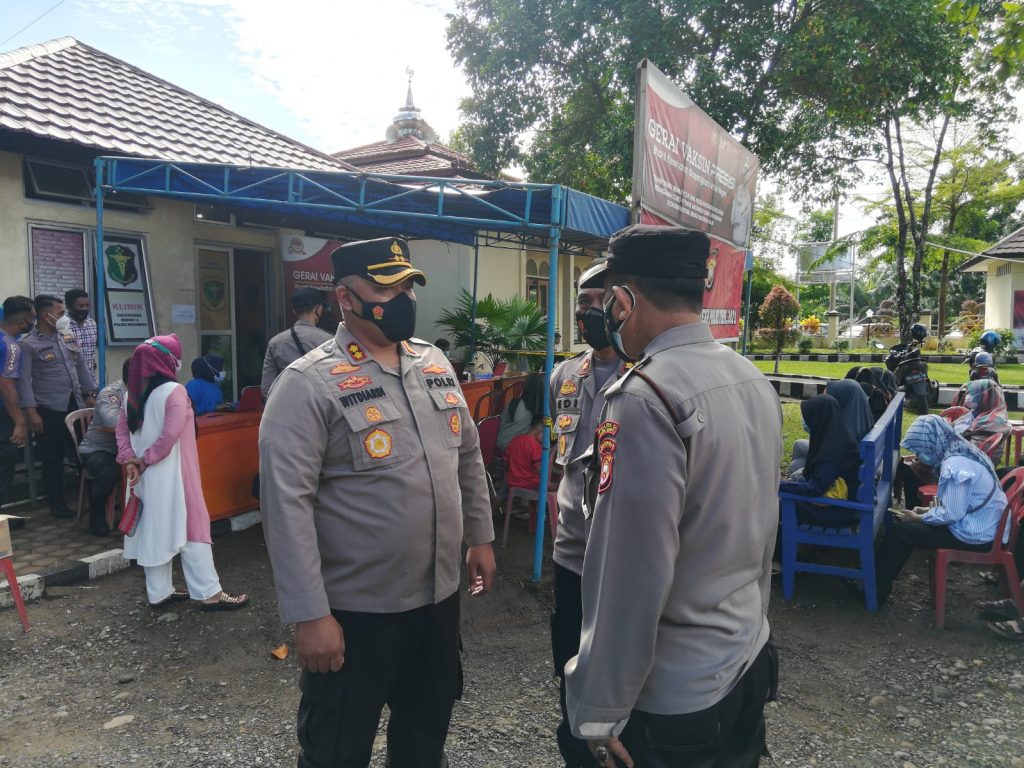 Untuk memastikan proses Vaksinasi berada dalam kondisi aman, sebelum Vaksinasi dilaksanakan, Kapolres Mukomuko AKBP Witdiardi, S.IK., MH dan Kabag Ops Polres Mukomuko Kompol Hasdi beserta PJU Polres Mukomuko Melaksanakan Cek dan Kontrol terhadap petugas Nakes, Vaksinator, dan peserta Vaksinasi.
