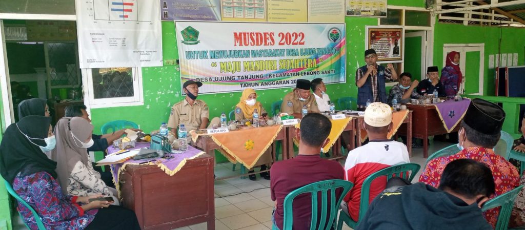 Dalam penyusunan Rencana Kerja Pemerintah Desa di Tahun 2022, ini merupakan agenda rutin pemerintahan Desa yang mengacu dari RPJM-DES bisa dituangkan ke RKP-DES untuk penyusunan APBD-DES di Tahun 2022, kegiatan Desa semestinya ini nantinya sudah selesai semua dilaksanakan di Musdes di tingkat Desa dan Kecamatan, Camat mengambil inisiatif mengadakan rakor untuk seluruh BPD dan pemerintah Desa se-Kecamatan Lebong Sakti untuk pelaksanaan Musdes dan Camat secara tegas memberikan jadwal seluruh pemerintah desa dan BPD untuk melaksanakan Musdes ditingkat Desa, pelaksanaan musdes awal pertama di Desa Ujung Tanjung 1 dan akan bergiliran diDesa – Desa lainnya harapan