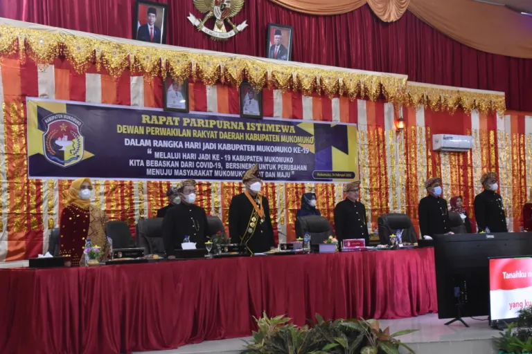 Perspektiftoday | Mukomuko-Rapat Paripurna Istimewa Hari Ulang Tahun ke-19 Kabupaten Mukomuko berjalan dengan khidmat dan penuh suka cita, di gedung rapat paripurna DPRD Mukomuko, pada Kamis (24/02/2022).