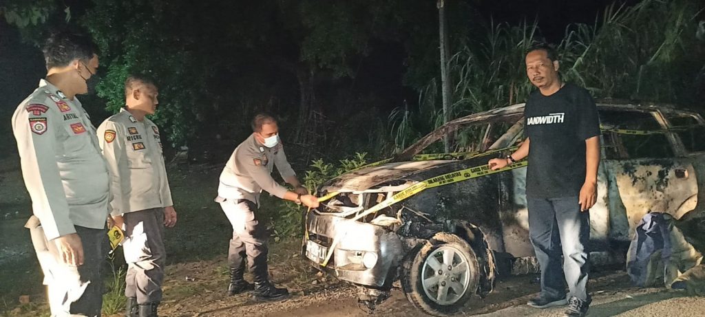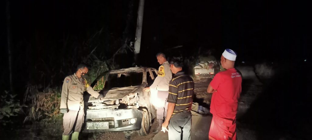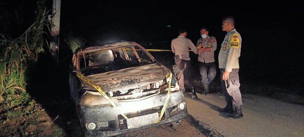 Perspektiftoday | Muarojambi_Satu unit mobil minibus berjenis Avanza dengan no polisi BH 1226 LX hangus terbakar di pinggir jalan di desa arang – arang kecamatan kumpeh ulu,senin 28/02/22
