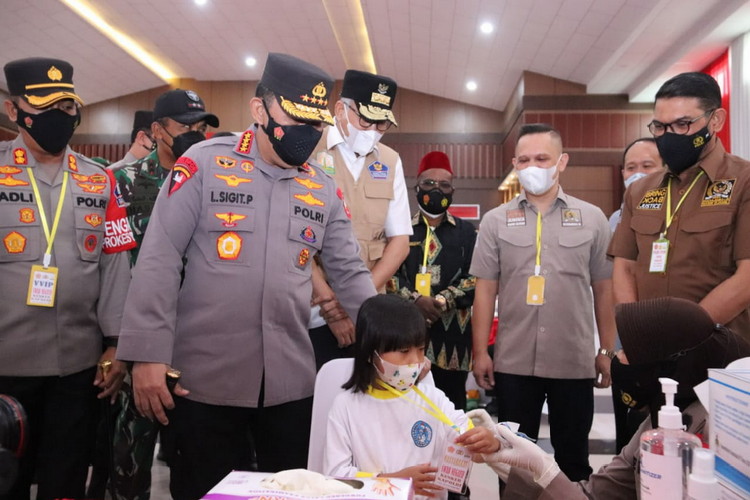 Perspektiftoday | Aceh-Kapolri Jenderal Listyo Sigit Prabowo meninjau akselerasi percepatan vaksinasi di Pidie Convention Center, Kabupaten Pidie, Aceh, Sabtu (26/2/2022). Dalam kegiatan ini, Sigit juga terhubung secara virtual dengan 6.441 titik di 34 Provinsi Indonesia yang juga melaksanakan vaksinasi.