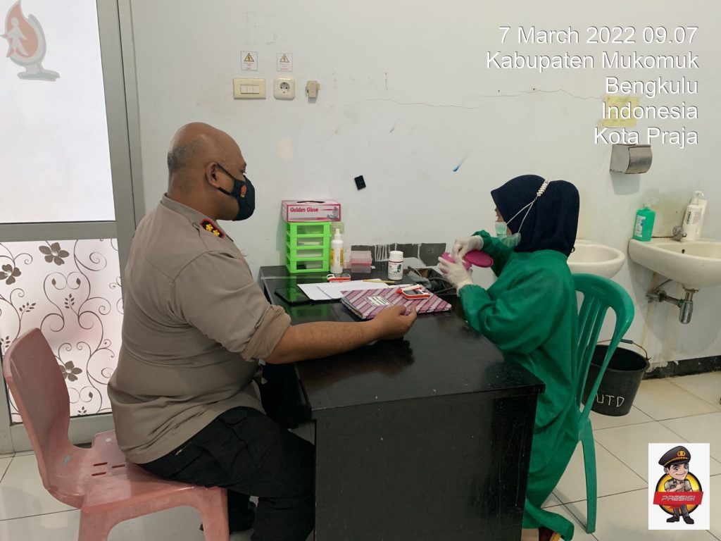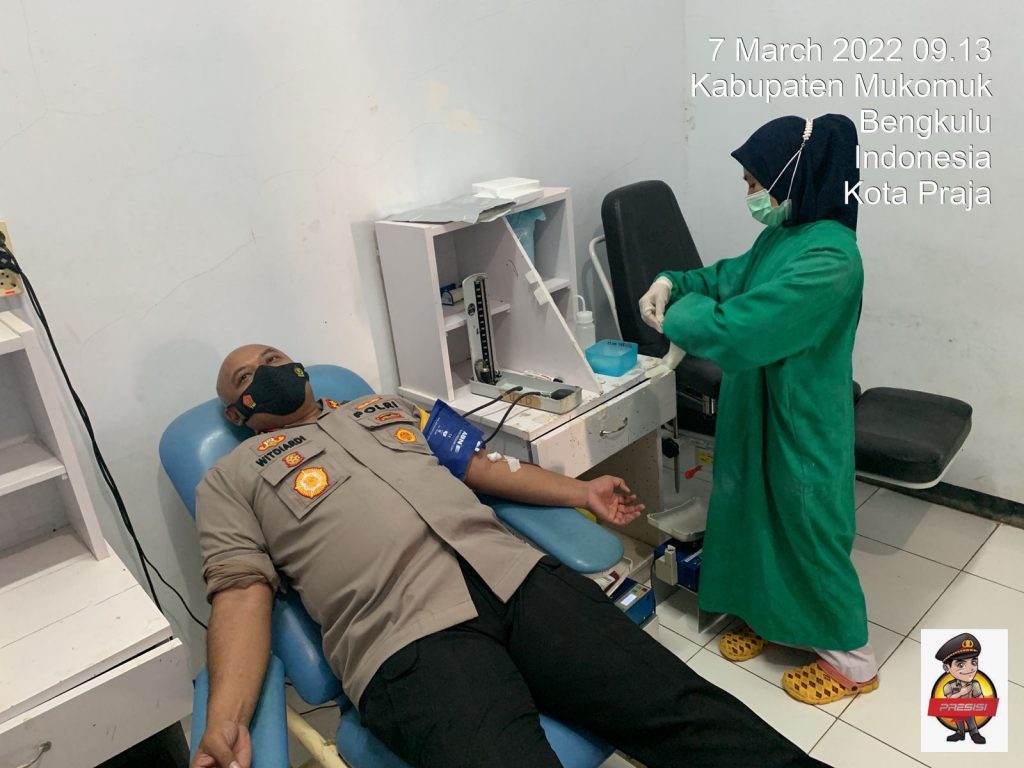Perspektiftoday | Mukomuko-Sebagai bentuk soliditas Polri, hari ini Senin, (07/03/2022) Kapolres Mukomuko AKBP Witdiardi, S.I.K, M.H melakukan donor darah terkait adanya laporan SPKT Polres Mukomuko, tentang adanya warga masyarakat Mukomuko yang membutuhkan 3 kantong Darah dengan Golongan Darah B.