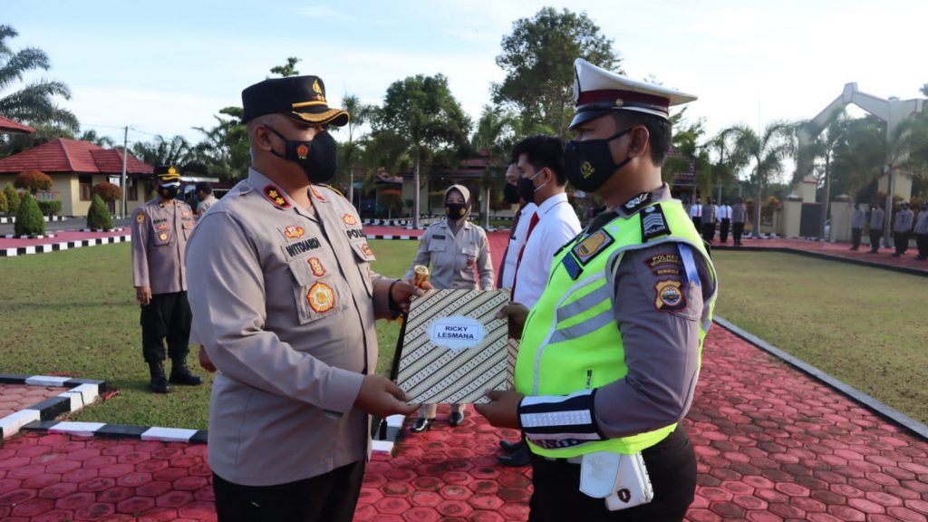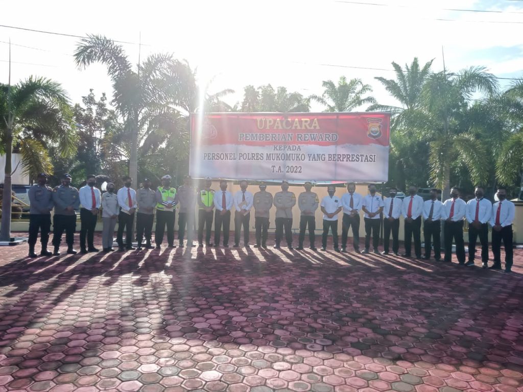 Perspektiftoday | Mukomuko-Kapoolres Mukomuko AKBP Witdiardi SIK MH Melaksanakan Kegiatan upacara pemberian reward kepada personel yang berprestasi tahun 2022 bertempat Dilapangan apel Mapolres mukomuko,ada pun yang bertindak sebagai inspektur upacara pada kegiatan tersebut Kapolres Mukomuko.AKBP Witdiardi.SIK.MH, Perwira upacara Kompol Dian Setyawan SH.MM.dan yang bertindak sebagai komandan upacara IPDA Bima Adi Pengestu S. pada hari Senin tanggal 07/03/2022 sekira pukul 08.00 wib s/d selesai.