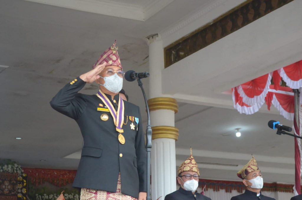 Perspektiftoday | Bengkulu Selatan –Momentum HUT ke-73 kabupaten BS ini, inspektur upacara Bupati BS Gusnan Mulyadi ditandai upacara bendera di lapangan Sekundang Kota Manna, Selasa (8/3/2022).