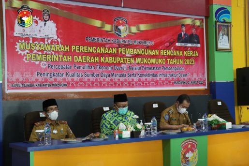 ” Ajang musrenbang ini merupakan Forum Musyawarah yang diikuti stakeholder guna membahas dan menyepakati program kegiatan prioritas,” ujar Kepala Bappeda Mukomuko. Terutama yang tercantum dalam daftar usulan rencana kegiatan pembangunan kelurahan/Desa, Kecamatan, Perangkat Daerah, yang diintegrasikan dengan prioritas pembangunan Kabupaten Mukomuko.