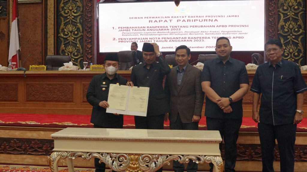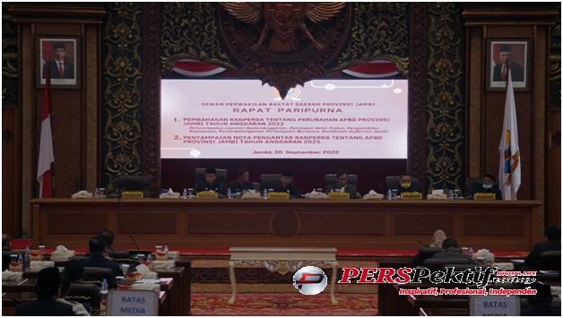Perspektiftoday | Jambi_– Gubernur Jambi, Dr. H. Al Haris, S.Sos., M.H., mengapresiasi fraksi-fraksi Dewan Perwakilan Rakyat Daerah (DPRD) Provinsi Jambi yang telah bekerja keras dalam menyelesaikan seluruh rangkaian pembahasan Perubahan APBD Tahun Anggaran 2022. Apresiasi tersebut disampaikan Gubernur Al Haris pada Rapat Paripurna DPRD Provinsi Jambi dalam rangka Pembahasan Ranperda Tentang Perubahan APBD Provinsi Jambi Tahun Anggaran 2022 serta Penyampaian Nota Pengantar Ranperda Tentang APBD Provinsi Jambi Tahun Anggaran 2023, bertempat di Ruang Rapat Utama Gedung DPRD Provinsi Jambi, Jumat (30/09/2022).