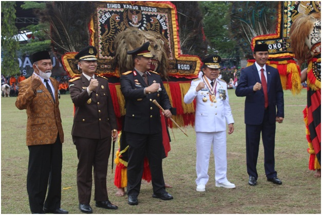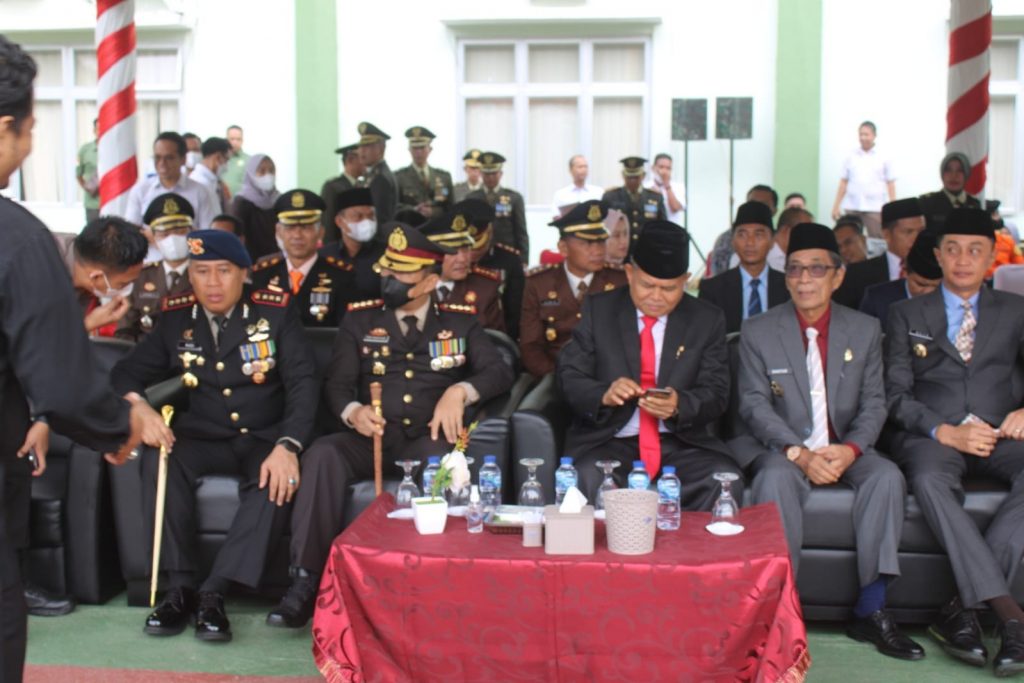 Hut TNI Ke 77 Dihadirin Kapolda Jambi, Ketua DPRD Provinsi Jambi Edi Purwanto, kapolres muaro jambi AKBP yuyan Priatmaja SIK MH ,Pj Bupati Muaro Jambi bachyuni deliansyah SH MH serta para unsur Forkopimda dan para undangan.