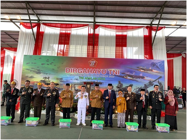 “Dalam amanat panglima TNI yang dibacakan Gubernur Jambi alharis menyampaikan Di Hut TNI Ke 77 dengan Tema TNI Adalah Kita. Berdasarkan hasil Survei TNI mendapat kan Kepercayaan tinggi dari Masyarakat .