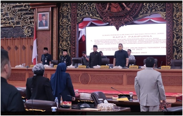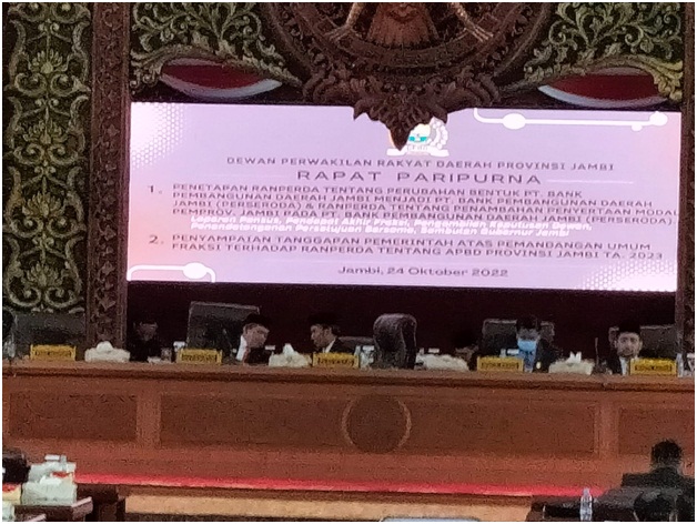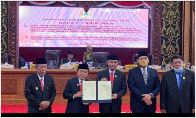 Perspektiftoday | Jambi_Seluruh anggota DPRD Provinsi Jambi menyatakan setuju untuk Rancangan peraturan Daerah (Ranperda) tentang Perubahan Bentuk Hukum PT. Bank pembangunan Daerah Jambi menjadi PT. Bank pembangunan Daerah Jambi (Perseroda) dan Ranperda tentang penambahan penyertaan