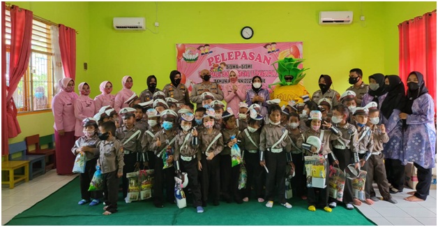 Pada kesempatan itu, Kapolres sempat memberikan motivasi agar anak-anak TK Kemala Bhayangkari tersebut rajin belajar.