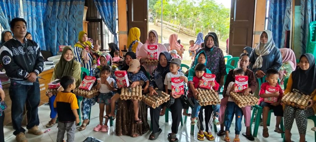 ” Untuk program Pencegahan Stunting hari ini kita Salurkan Bantuan tambahan susu dan telur untuk anak usia 5 tahun kebawah beserta bantuan susu dan telur untuk ibu hamil” Kata Carles