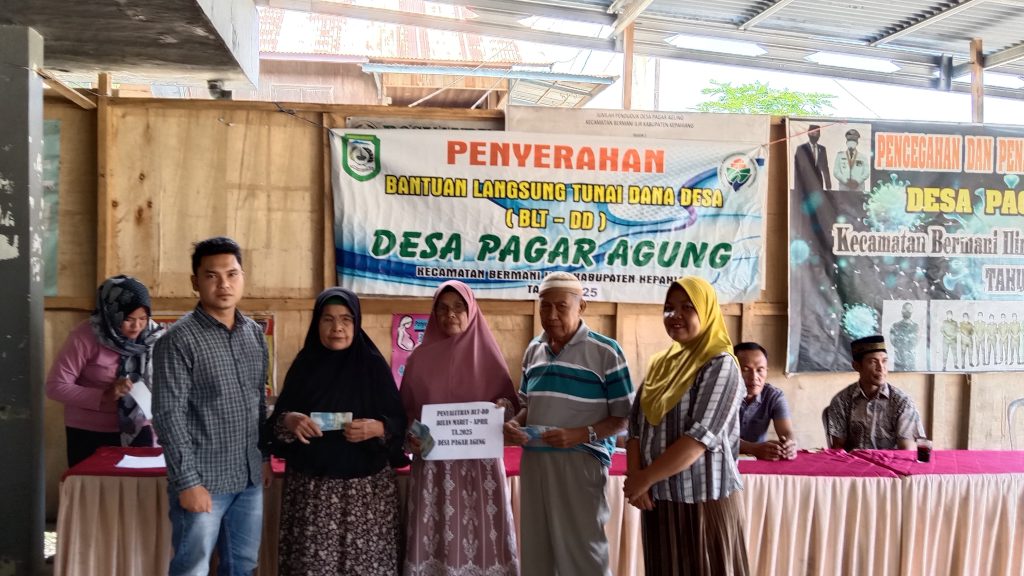 Kepahiang,Perspektif.today –Pemerintah Desa Pagar Agung Kecamatan Bermani Ilir Kabupaten Kepahiang melanjutkan pembagian bantuan langsung tunai dana desa (BLT-DD) untuk bulan Maret dan April sebesar Rp.600.000, kepada 30 KPM ( Keluarga Penerima Manfaat) bertempat di Balai Desa setempat, Rabu (16/4/2025).